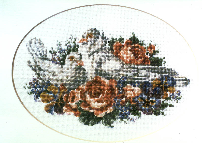 Aufwendiges viktorianisches Stickbild (7 Stiche pro cm, Größe 15 x 20 cm) aus einem Stickheft von Burda oder von Wiehler Gobelin aus Stade bei Hamburg. Ich glaube, diese Firma ist noch nicht im Internet. |